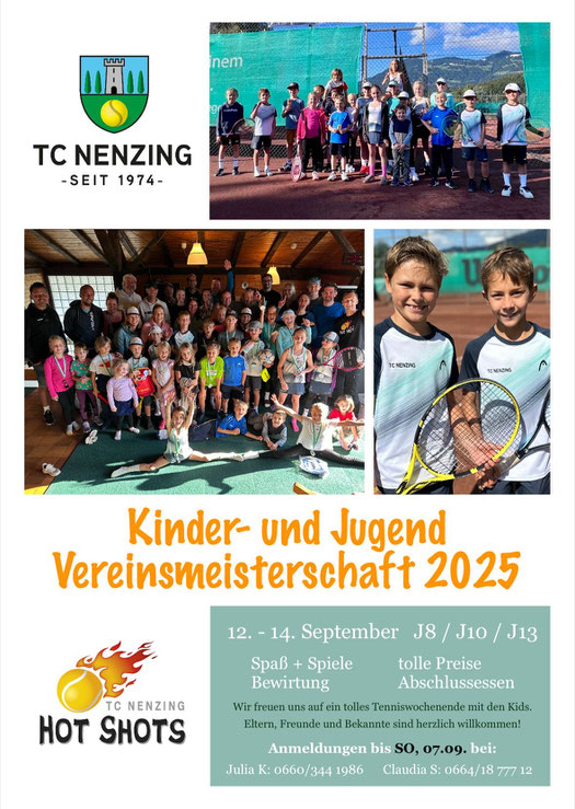 Am 13. September durften wir bei wunderbarem herbstlichem Wetter und idealen Tennis-Temperaturen unsere Vereinsmeisterschaft austragen. Viele Zuschauer:innen sorgten für eine tolle Stimmung – und unsere „Hot Shots“ begeisterten mit spannenden Matches und großartigen Ballwechseln!